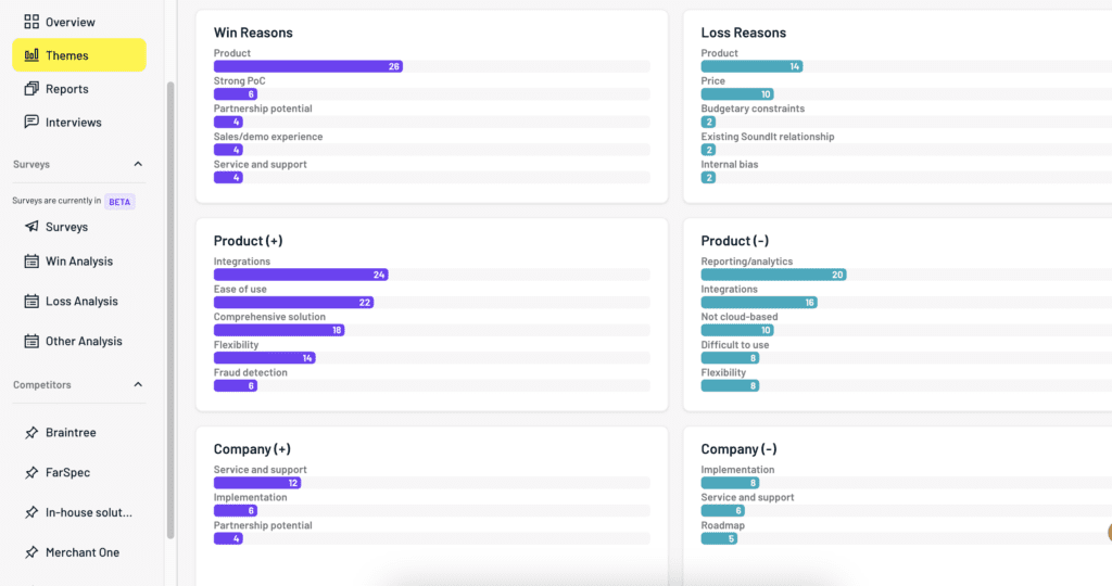 Capture and analyze objective feedback from your buyers to remove bias from decisions being made about your product and go-to-market strategy.