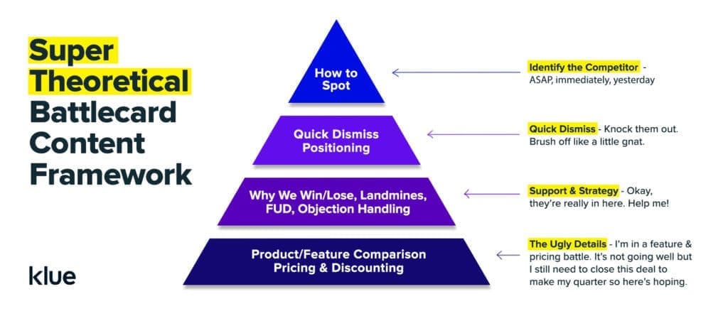 And, maintained with fresh content to ensure they are accurate. So, then how do you create battlecards your sales reps will love and use? Here’s a super theoretical sales battlecard content framework that will get you started.