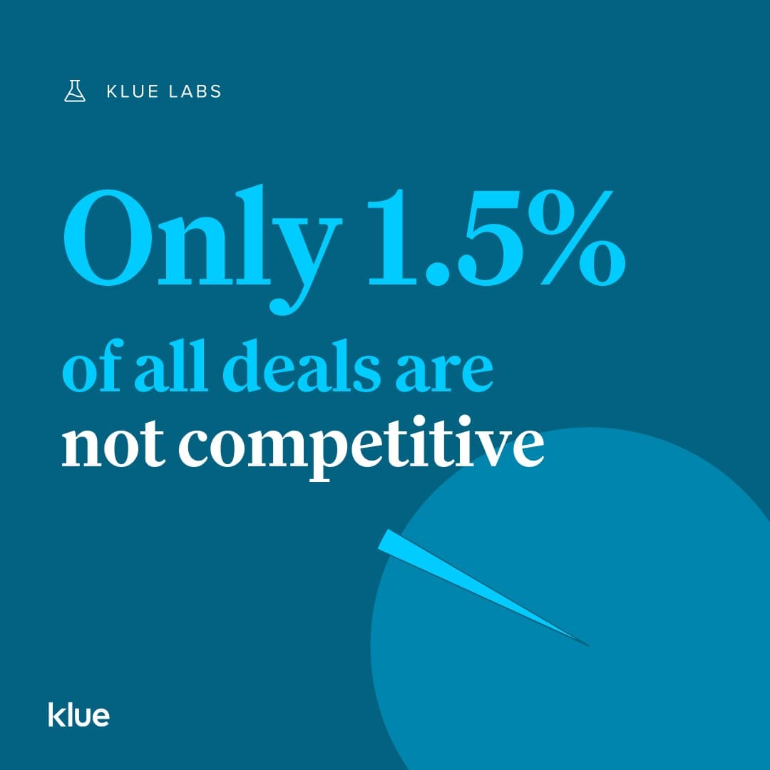 Our data shows that across all of the buyer interviews analyzed, only 1.5% of deals had zero competitors involved.