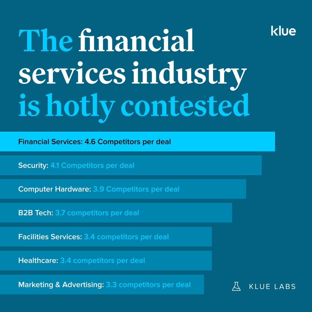 However, the financial services industry produced the most competitive deals with over 4.5 competitors per deal.