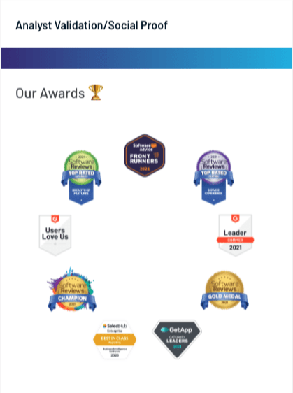 Embedding social proof into these cards, through awards badges and customer logos, is one of the more effective ways to accomplish this.